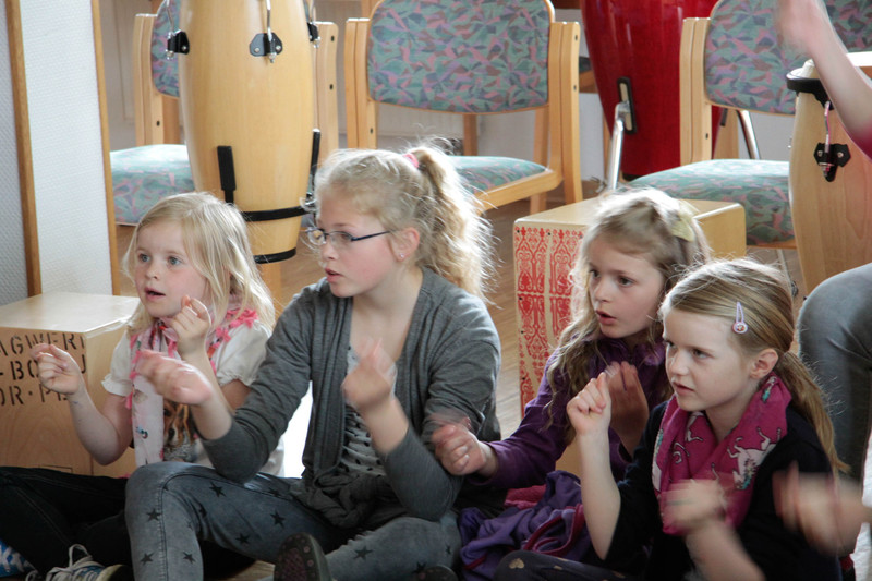 Auch Körper und Stimme wurden eingesetzt und neue Instrumente kennengelernt. Anweisung bekamen sie von Wolfgang Schneider, welcher für den NDR Percussion-Workshops für Schulen gestaltet.